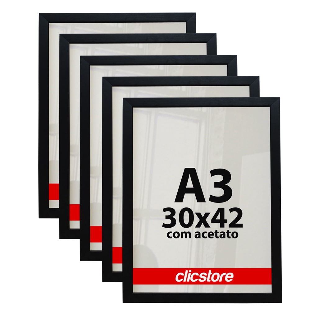 Kit 5 Molduras Quadros A3 Acetato 30x42 Foto Poster Diploma