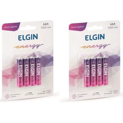 08 Pilhas Recarregável Elgin Aaa 1000mah 02 Blister C/4 Unid