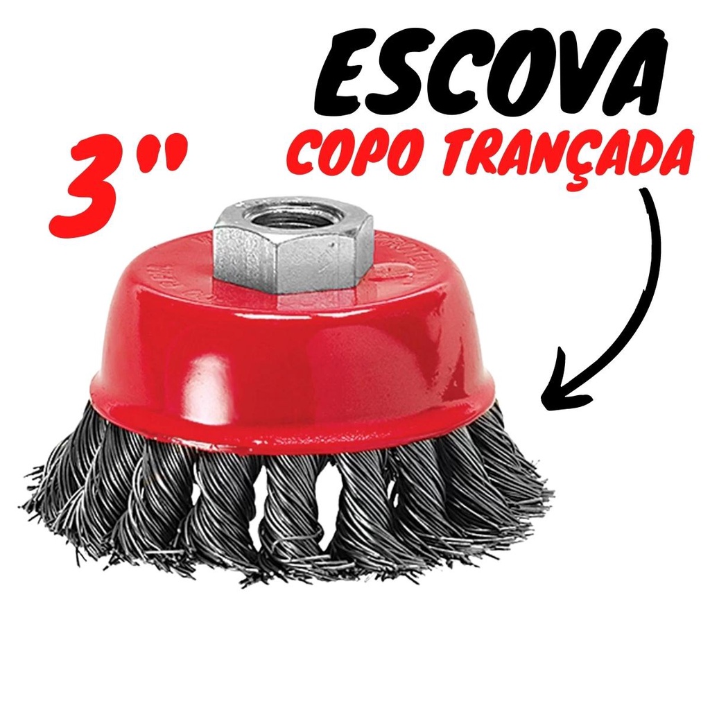 Escova de Aço Copo 3" Trançada Reforçada Industrial